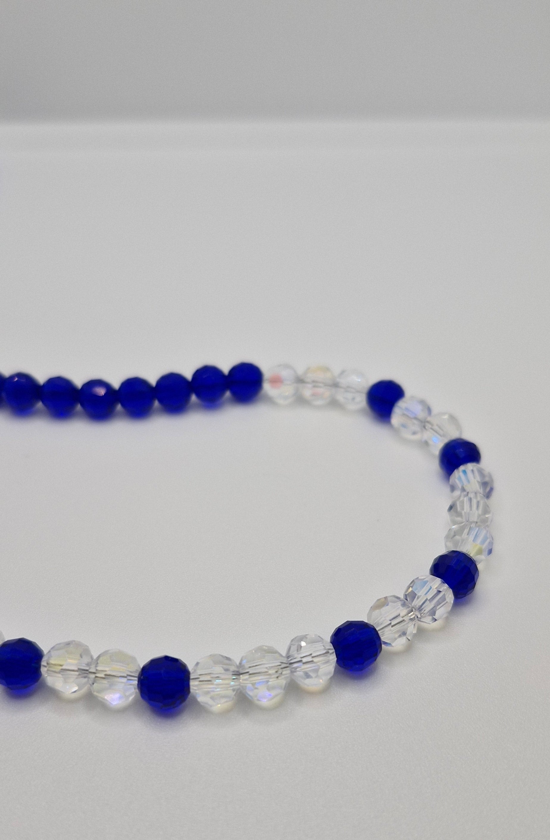 Blue and Clear Czech Crystal Faceted 6mm Necklace with Magnetic Stainless Steel Clasp