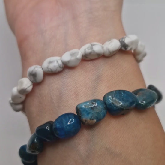 Calm & Focus Nugget Bracelet – Natural Howlite & Apatite | Handmade Stretch Gemstone Bracelet
