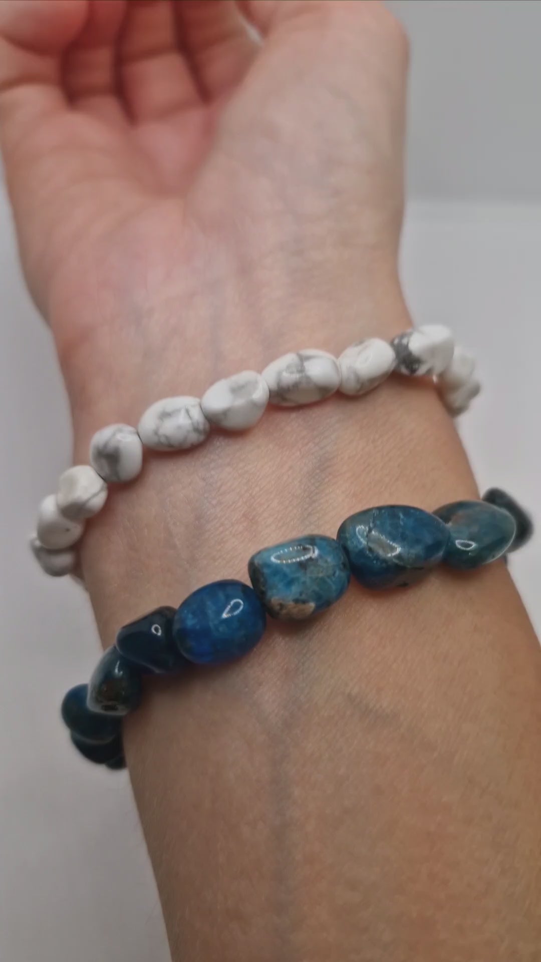 Select your preferred stone: one handcrafted bracelet with either calming Howlite or inspiring Apatite.