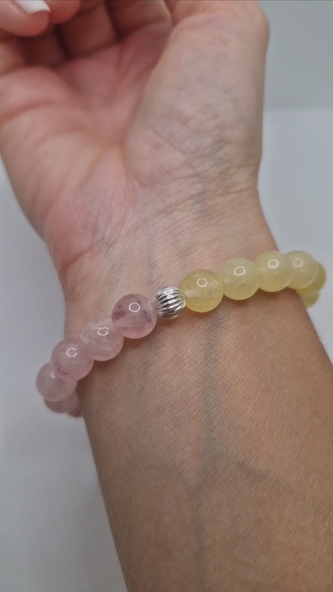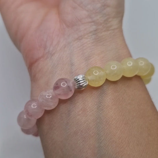 Citrine, Labradorite & Rose Quartz Bracelet – Joy, Protection & Love | Natural 8mm Gemstones with Sterling Silver Accent