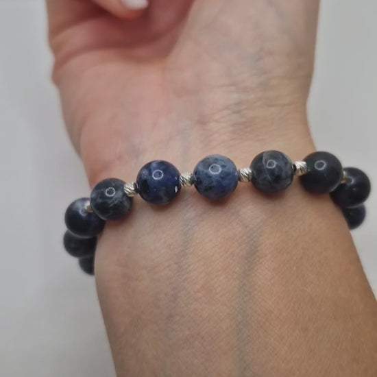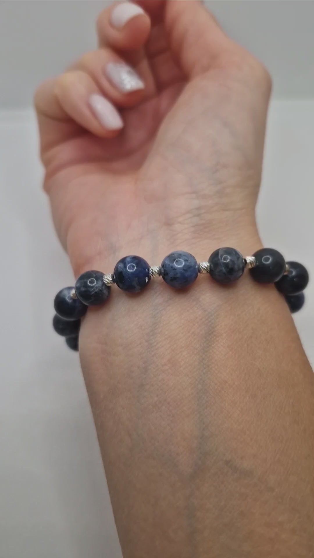 Dark Blue Sodalite Bracelet – Clarity, Balance & Inner Peace | Sterling Silver Accent Beads