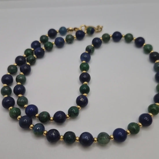 Lapis Lazuli & Green Chrysocolla Necklace – 6mm Natural Gemstones with Gold-Plated Clasp for Calm, Clarity & Heart Balance