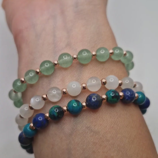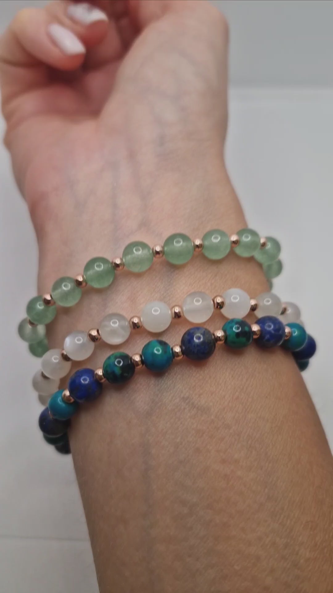 Rose Gold Gemstone Bracelet Collection – Promote Balance, Calm & Clarity -Aventurine, Moonstone, Chrysocolla/Lapis