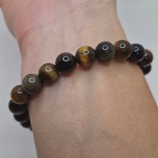 Tiger Eye & Black Rainbow Obsidian Bracelet – Strength, Protection & Grounding Energy- Natural Grade A Gemstones (8mm)