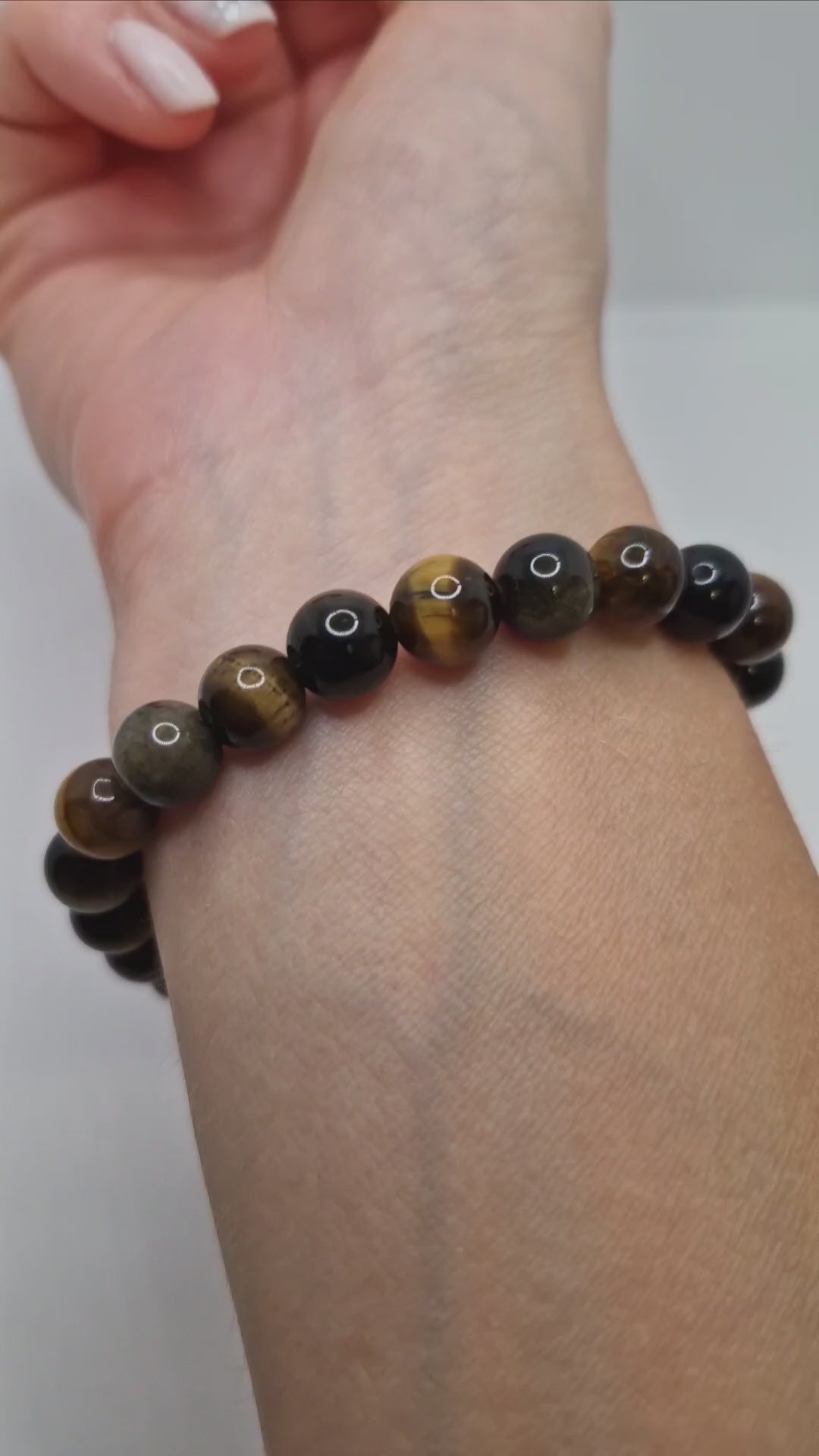 Yellow/Brown Tiger Eye (Natural, Grade A, 8mm) – Known as the “Stone of Courage and Focus,” Tiger Eye enhances willpower, confidence, and determination. Its golden-brown chatoyance radiates grounding strength and inner balance.